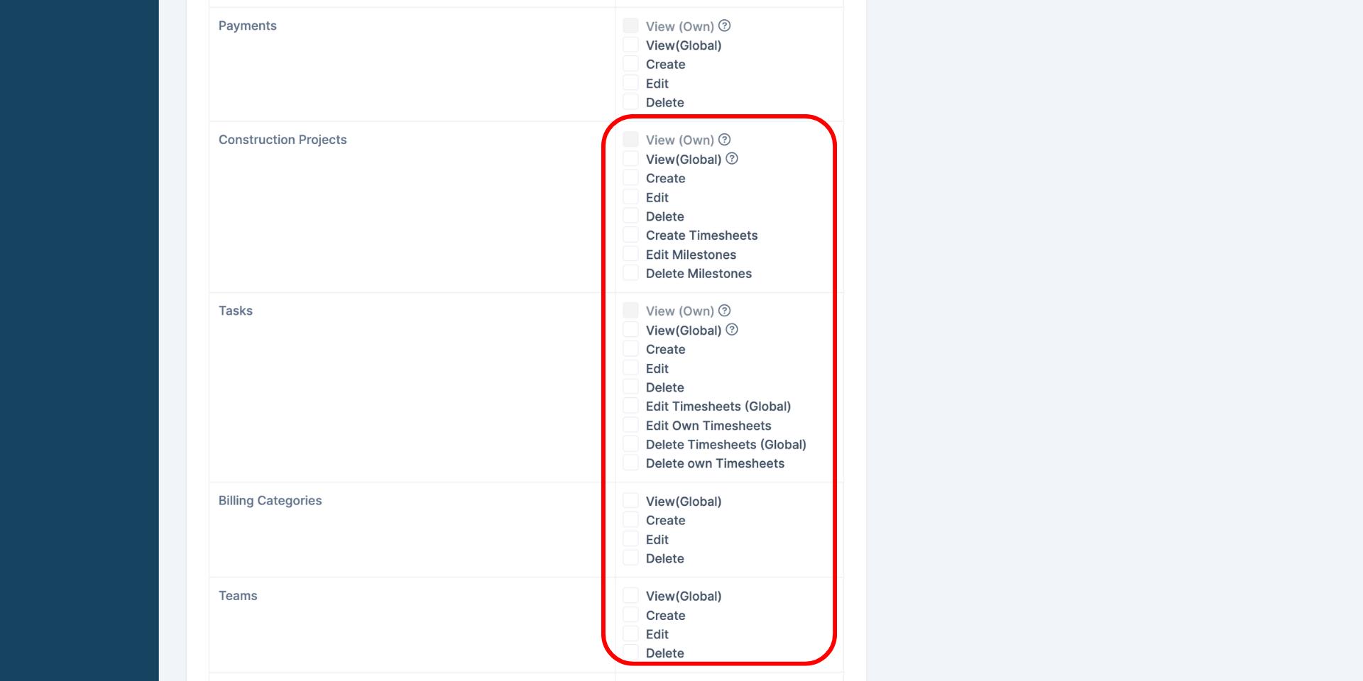 Navigate to Modules > Construction Orchestrator > Billing Categories.
